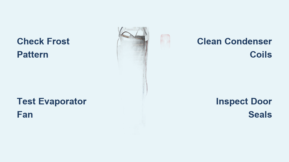 Remove the freezer’s back panel to inspect evaporator coil frost patterns. A light, even coating across all coils indicates proper refrigerant levels and system function. Partial frost coverage—frost limited to upper coils while lower sections remain clear—signals significant refrigerant loss, typically 80% or more of the system’s original capacity. This distinctive pattern is your strongest visual indicator of a refrigerant leak requiring professional attention.