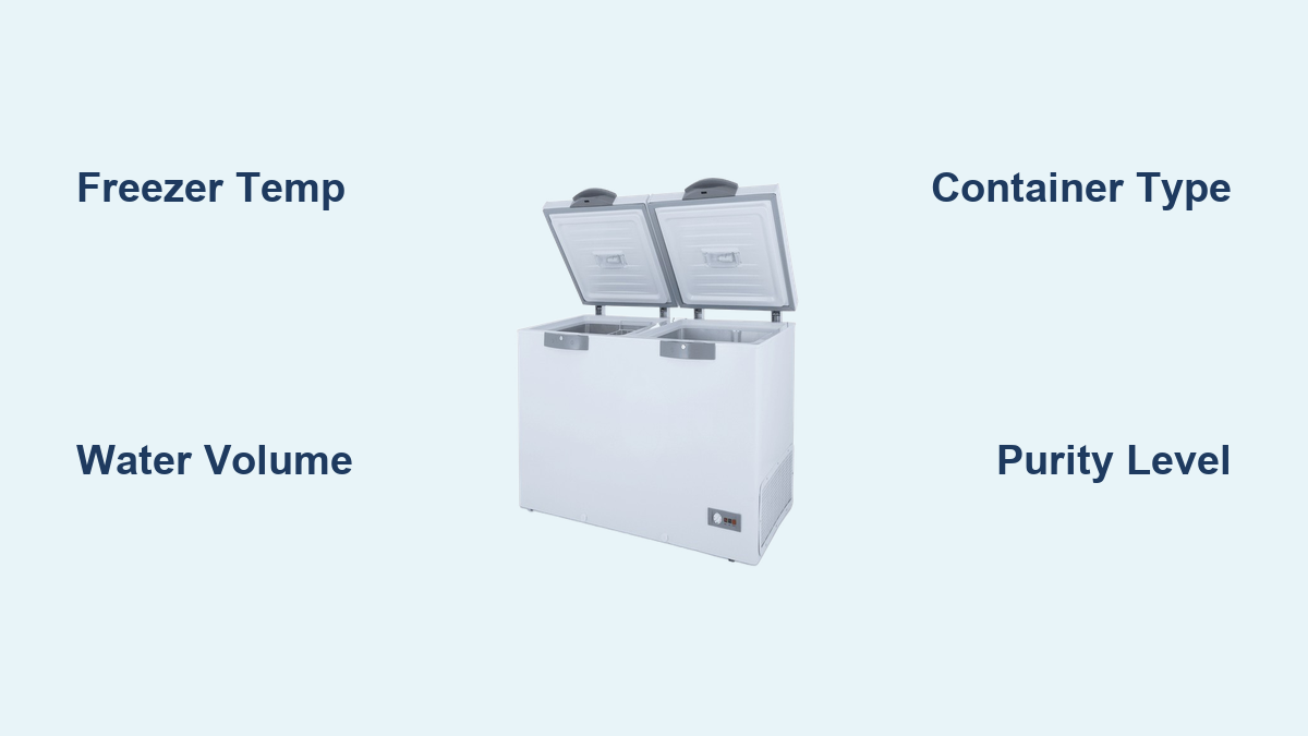 - Specific variables that affect freezing time (container type, water purity, freezer temperature)