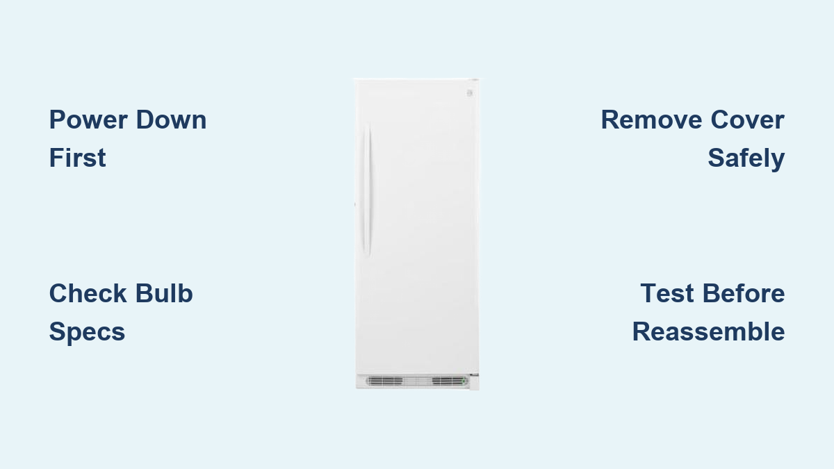 Don’t reinstall the cover immediately after bulb replacement. Instead, restore power temporarily to test your work before reassembling everything. Plug in the freezer or flip the circuit breaker back on, then open and close the door to activate the light switch. If the new bulb illuminates properly, immediately disconnect power again before proceeding with reassembly. If the light fails to turn on, double-check that the bulb is fully seated and that the door switch activates when the door opens. This test-before-completion approach saves you from having to repeat the entire disassembly process if something isn’t working correctly.
