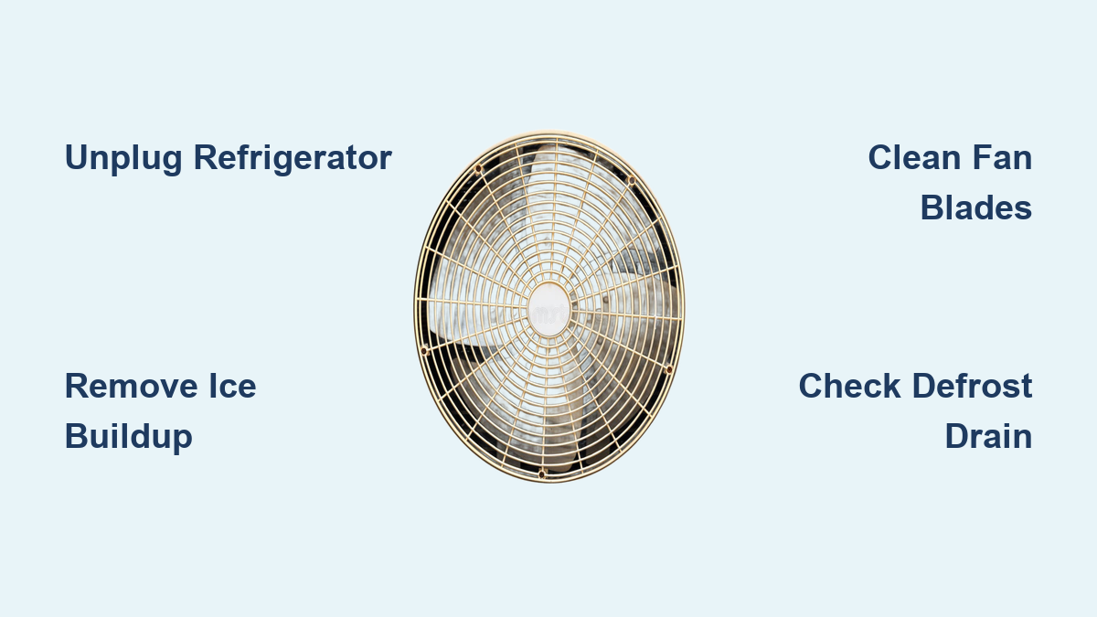 With ice removed, the fan assembly is exposed and ready for cleaning. Begin by inspecting the fan blades carefully. Look for damage, warping, or excessive wear that might indicate a failing motor. Dust the blades thoroughly with your soft-bristled brush, working from the center outward.