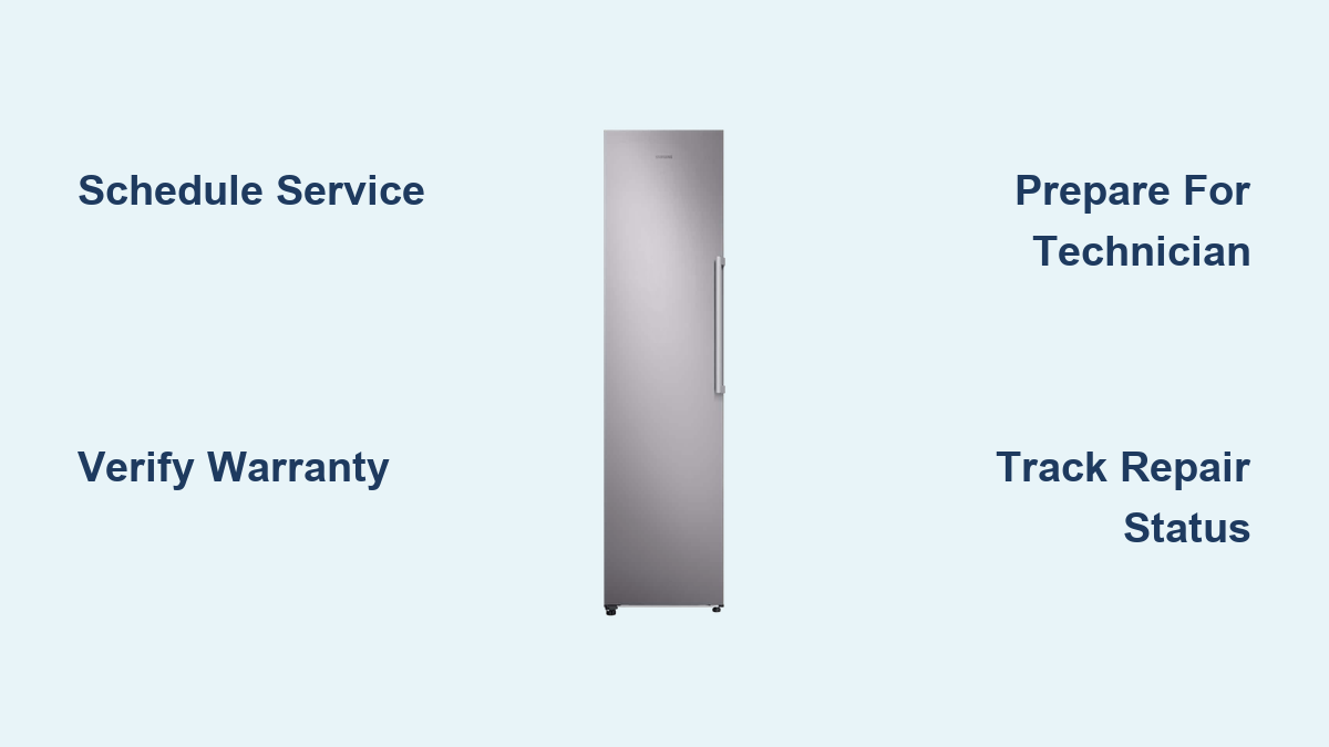 To initiate service, log into your Samsung Account or call 1-800-SAMSUNG. You’ll describe your specific symptoms, which helps Samsung match you with a technician experienced in your exact freezer model’s common issues. This targeted approach often allows repairs in a single visit when technicians arrive with correct parts.
